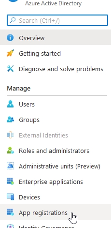 Na seção Manage, selecione App registrations.