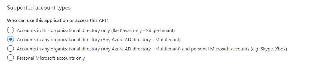 Accounts in any organizational directory (Any Azure AD directory Multitenant)