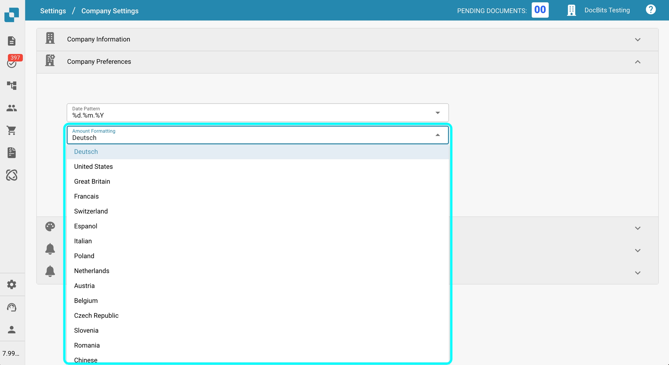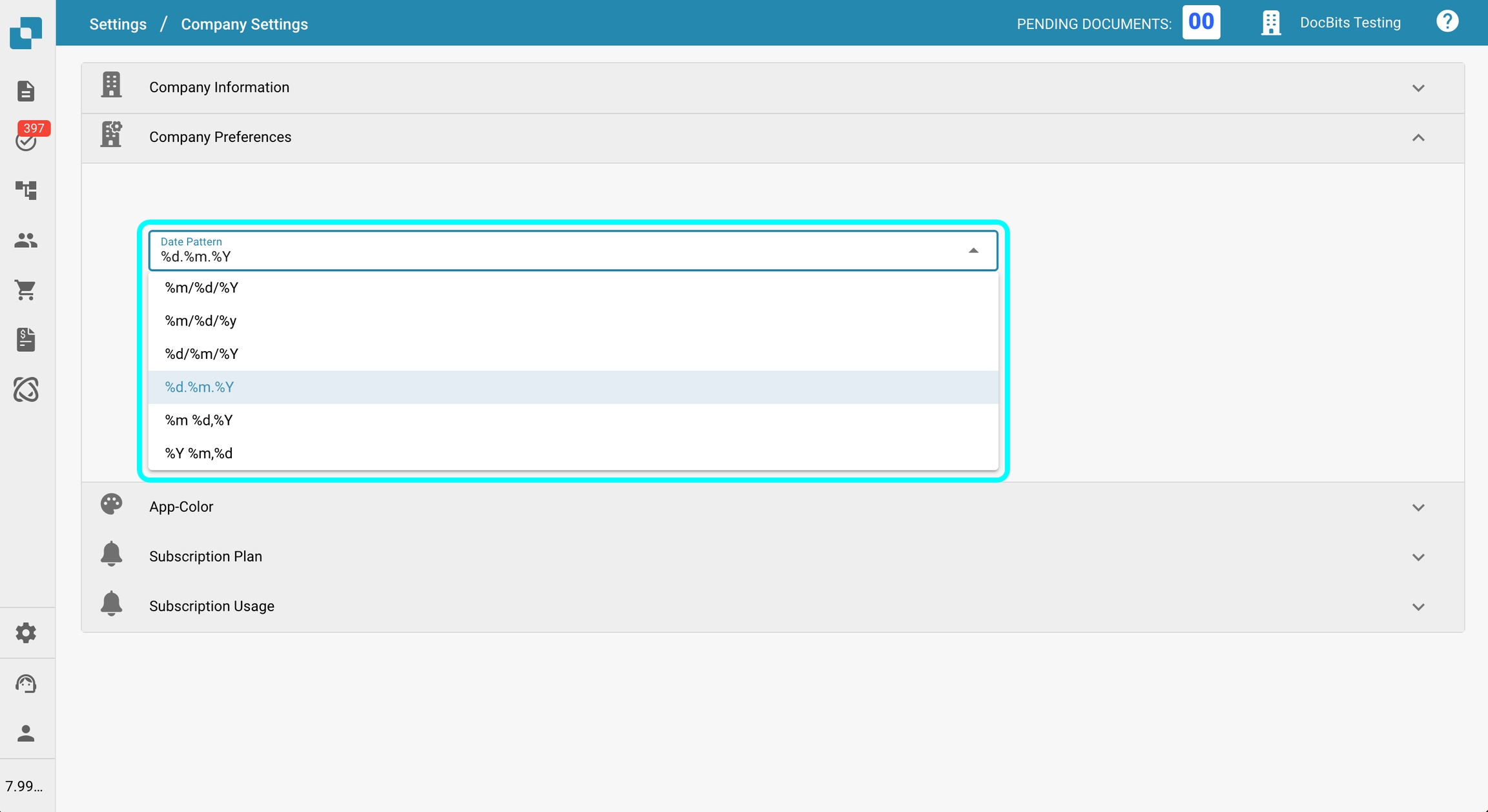 Nesta configuração, você pode escolher o formato de data a ser usado em todo o DocBits. Várias opções de formatação estão disponíveis, permitindo que você personalize como as datas são exibidas.