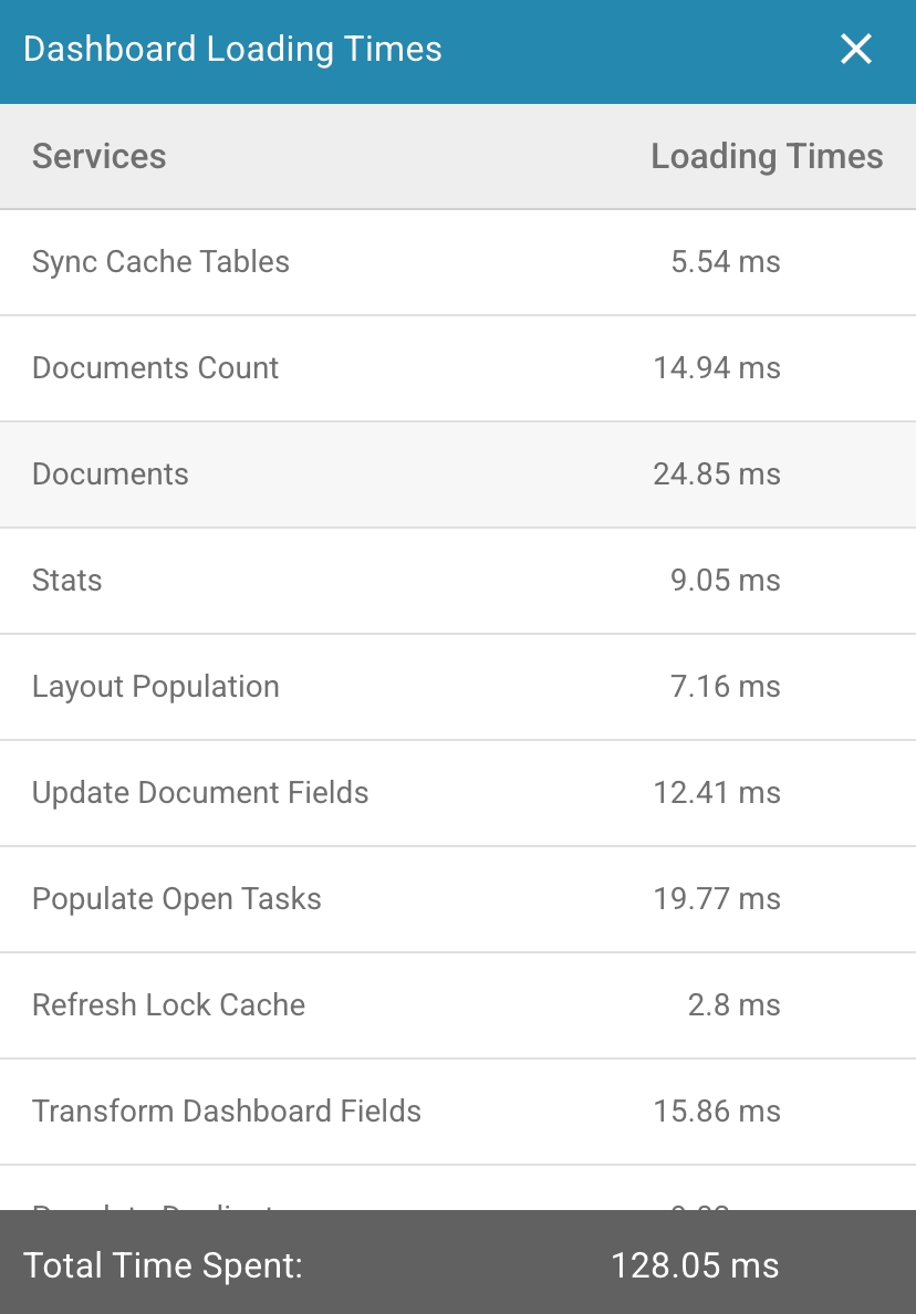 Clicar neste botão abrirá uma janela pop-up exibindo os tempos de carregamento para cada serviço, com o tempo total de carregamento mostrado na parte inferior.
