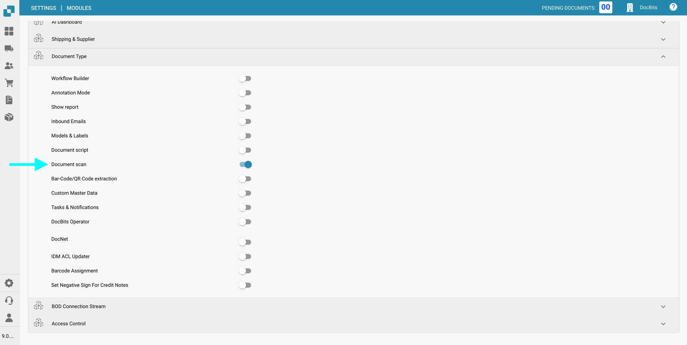 Note: Este recurso deve ser ativado em Configurações -> Processamento de documentos -> Módulo -> Tipo de documento -> Digitalização de documentos
