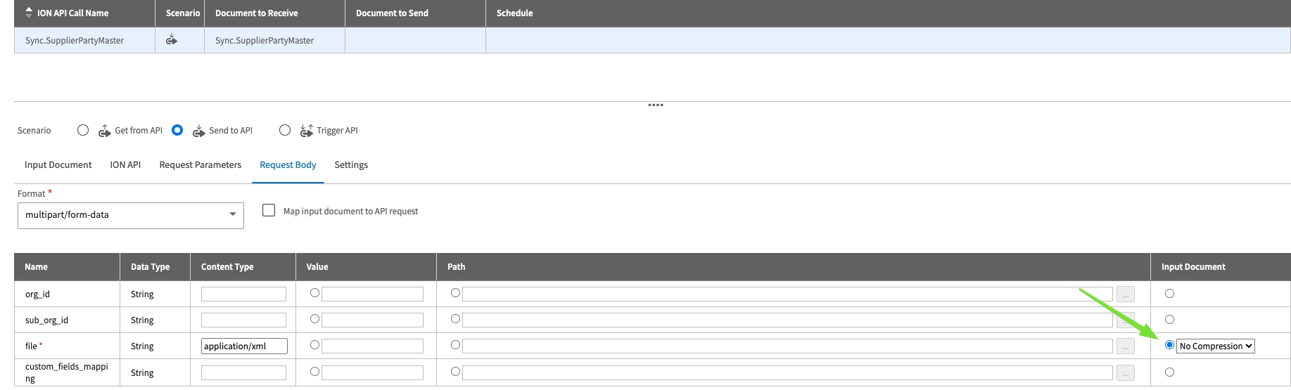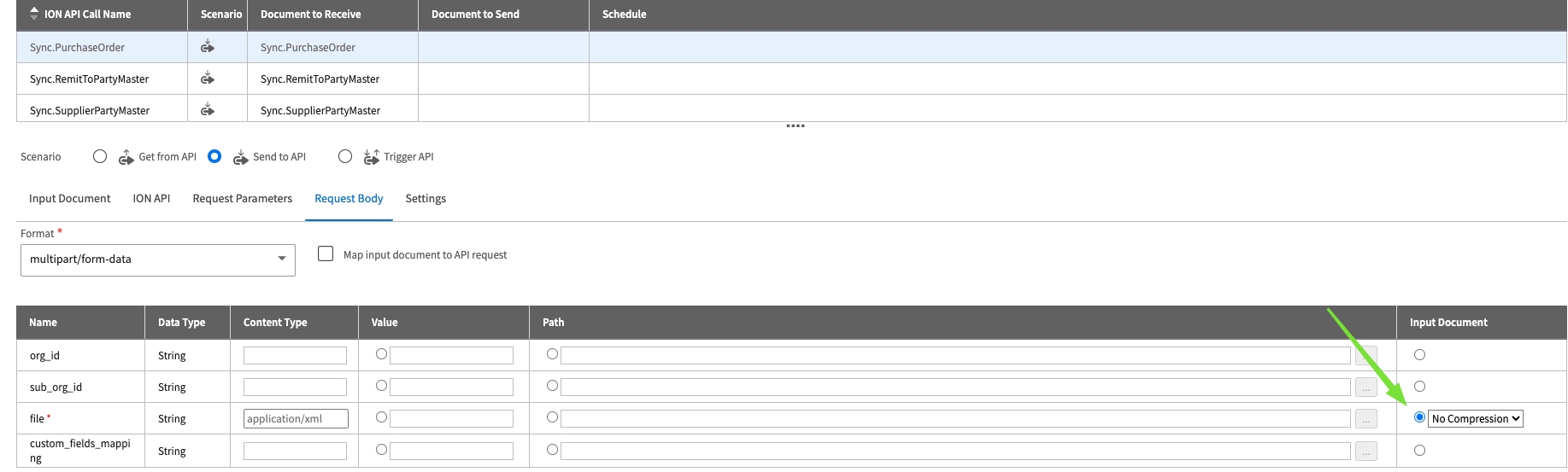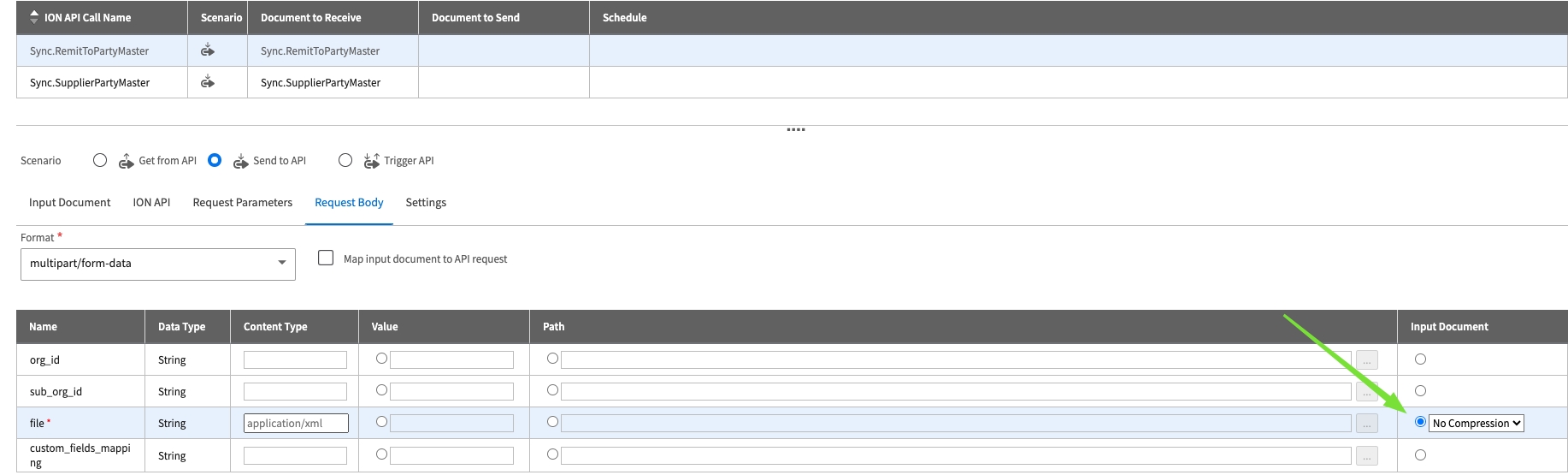 { "ID": "//DataArea/LnTaxCode/DocumentID/ID" }Para File, defina Input Document = No Compression.