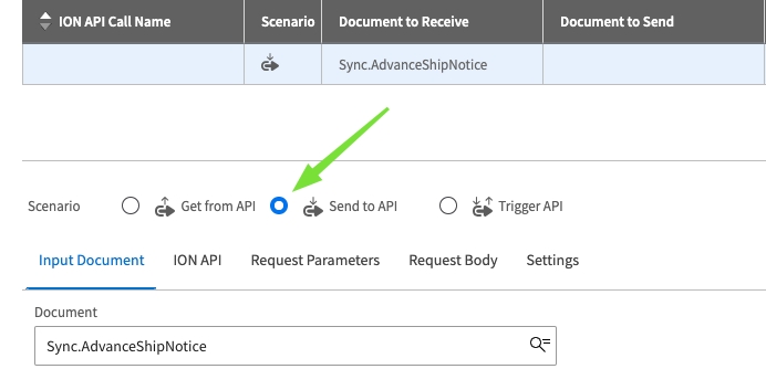 Sync.AdvanceShipNoticePara Product, selecione o endpoint de API criado no Passo 1: Criar uma API.