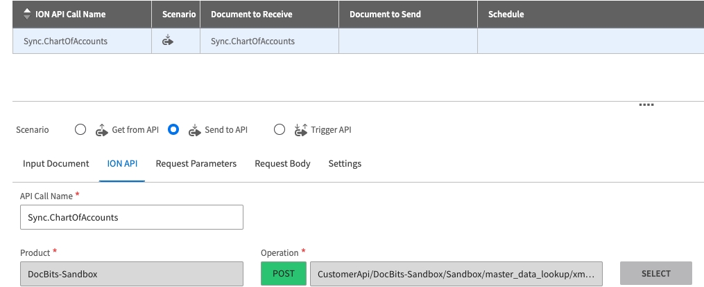 Sync.ChartOfAccountsPara Product, selecione o endpoint de API criado no Passo 1: Criar uma API.