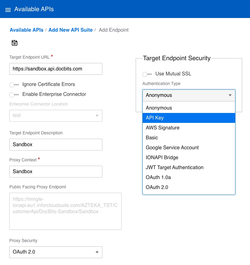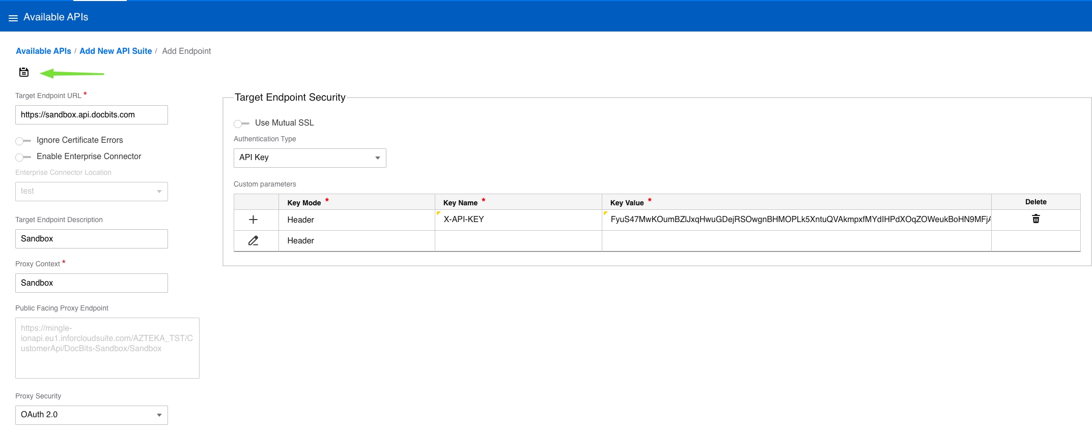 DocBits-APIION API Connector: Use o connection point criado no Passo 2: Criar um API Connection Point.