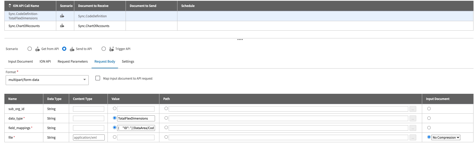 { "ID": "//DataArea/ChartOfAccounts/IDs/ID", "NominalAccount": "//DataArea/ChartOfAccounts/BaseChartOfAccounts/GLNominalAccount", "AccountType": "//DataArea/ChartOfAccounts/BaseChartOfAccounts/AccountType", "Description": "//DataArea/ChartOfAccounts/BaseChartOfAccounts/Description", "DimensionProfile": "//DataArea/ChartOfAccounts/DimensionProfileSet/DimensionProfile/ID", "Dimension1": "//DataArea/ChartOfAccounts/DimensionProfileSet/DimensionProfile/DimensionUsage[0]/ListID", "Usage1": "//DataArea/ChartOfAccounts/DimensionProfileSet/DimensionProfile/DimensionUsage[0]/Usage", "Dimension2": "//DataArea/ChartOfAccounts/DimensionProfileSet/DimensionProfile/DimensionUsage[1]/ListID", "Usage2": "//DataArea/ChartOfAccounts/DimensionProfileSet/DimensionProfile/DimensionUsage[1]/Usage", "Dimension3": "//DataArea/ChartOfAccounts/DimensionProfileSet/DimensionProfile/DimensionUsage[2]/ListID", "Usage3": "//DataArea/ChartOfAccounts/DimensionProfileSet/DimensionProfile/DimensionUsage[2]/Usage", "Dimension4": "//DataArea/ChartOfAccounts/DimensionProfileSet/DimensionProfile/DimensionUsage[3]/ListID", "Usage4": "//DataArea/ChartOfAccounts/DimensionProfileSet/DimensionProfile/DimensionUsage[3]/Usage", "Dimension5": "//DataArea/ChartOfAccounts/DimensionProfileSet/DimensionProfile/DimensionUsage[4]/ListID", "Usage5": "//DataArea/ChartOfAccounts/DimensionProfileSet/DimensionProfile/DimensionUsage[4]/Usage", "Dimension6": "//DataArea/ChartOfAccounts/DimensionProfileSet/DimensionProfile/DimensionUsage[5]/ListID", "Usage6": "//DataArea/ChartOfAccounts/DimensionProfileSet/DimensionProfile/DimensionUsage[5]/Usage", "Dimension7": "//DataArea/ChartOfAccounts/DimensionProfileSet/DimensionProfile/DimensionUsage[6]/ListID", "Usage7": "//DataArea/ChartOfAccounts/DimensionProfileSet/DimensionProfile/DimensionUsage[6]/Usage" }Para File, defina Input Document = No Compression.