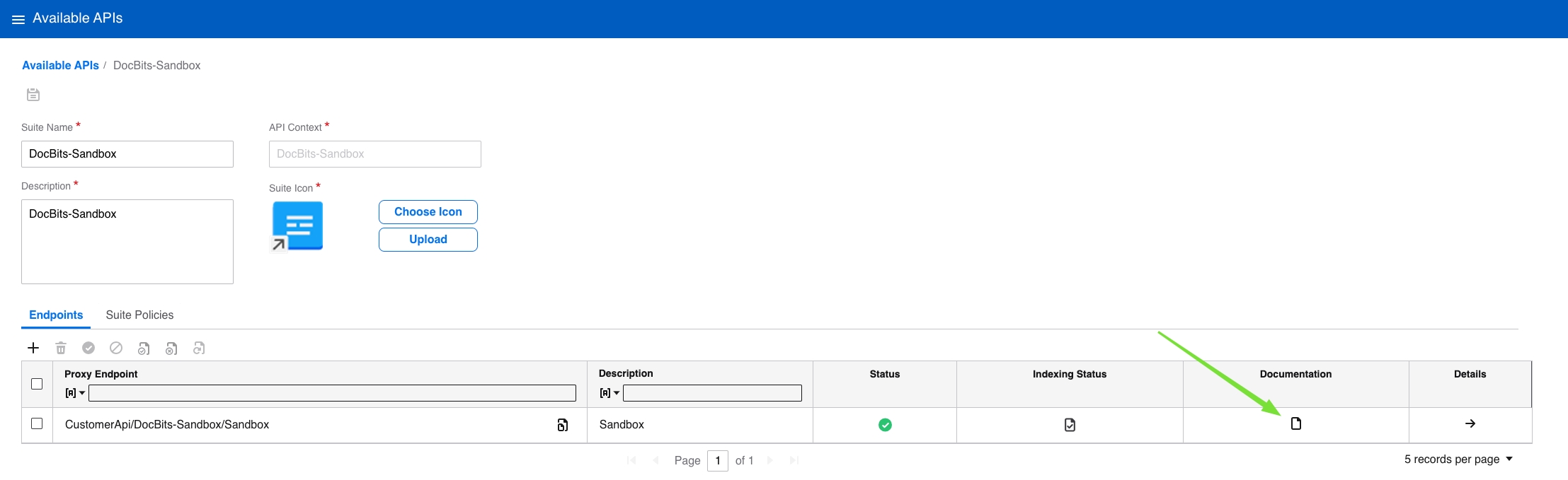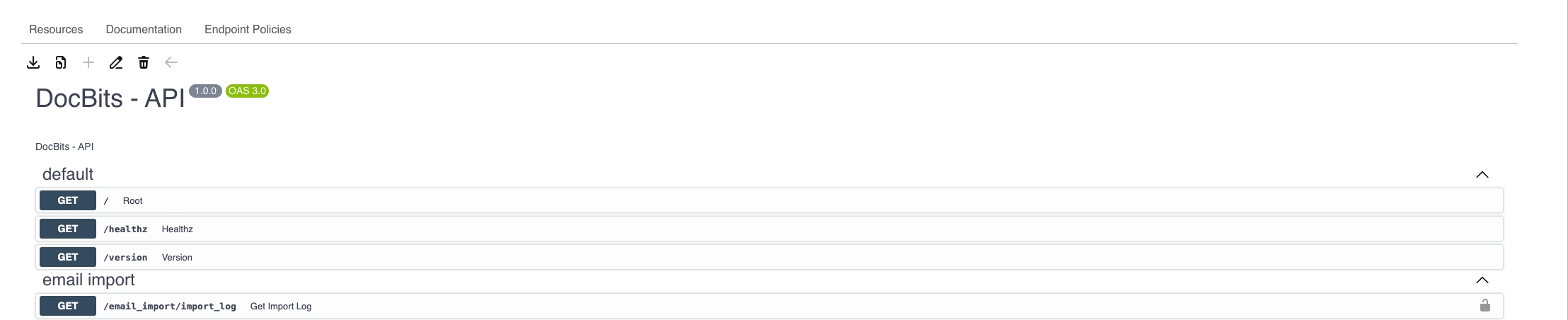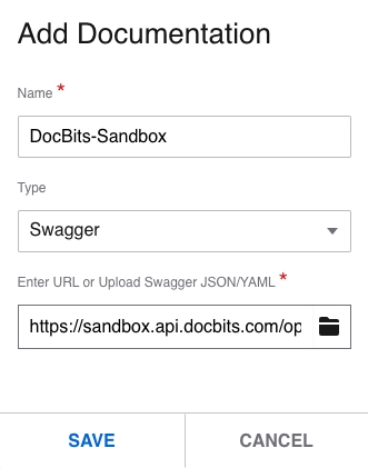 DocBits-Stage,DocBits-Sandbox,DocBits-Prod, ouDocBits-Demo(correspondente ao ambiente).Type: Swagger