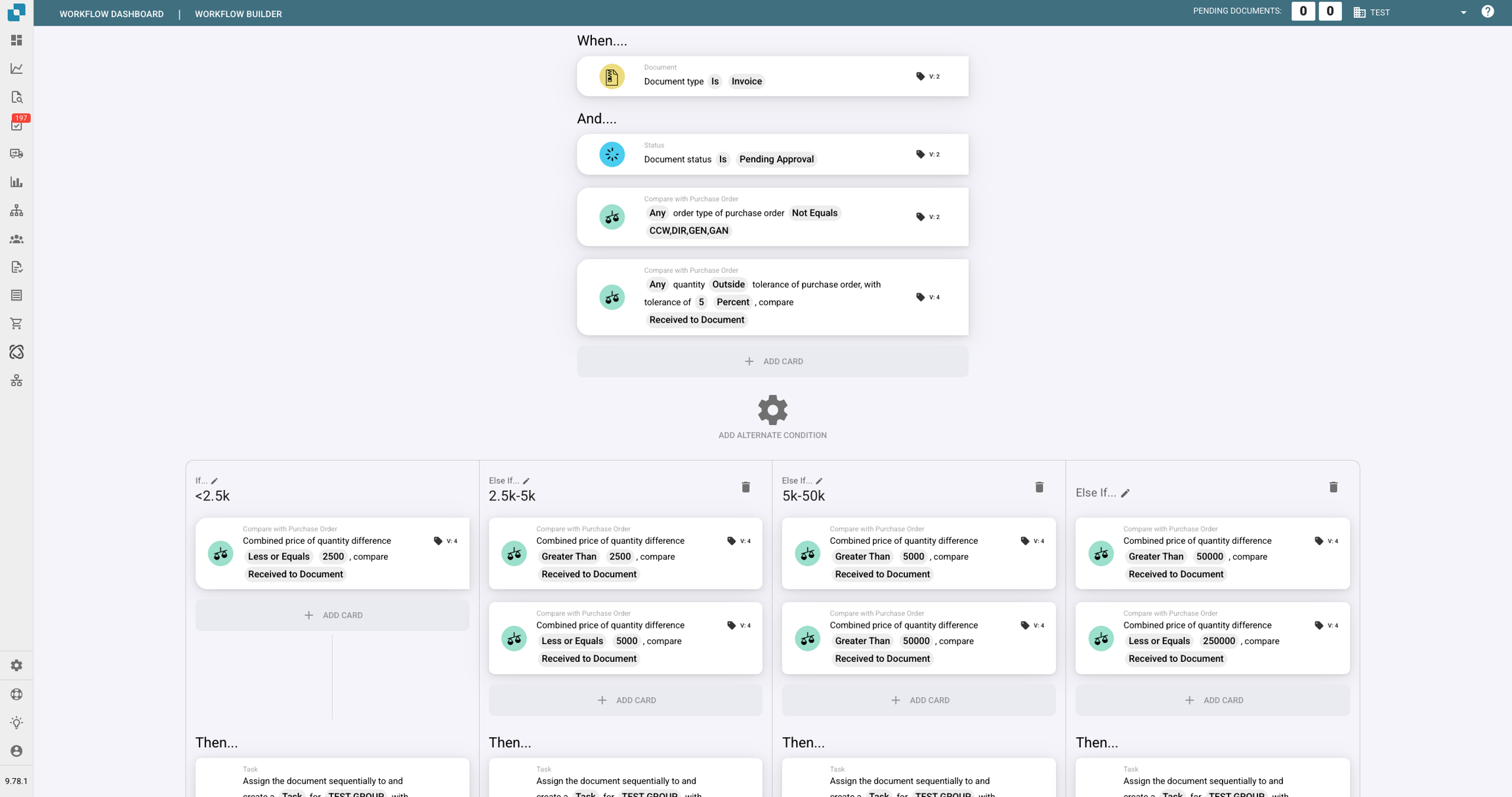 Dois novos cartões de fluxo de trabalho expandem as capacidades de automação. O primeiro permite verificar se um documento pertence a uma sub-organização específica, facilitando o manuseio de configurações multi-entidades. O segundo introduz uma verificação de tolerância de data de entrega, que compara datas de entrega com a data atual em dias úteis para ajudar a gerenciar e aplicar requisitos de entrega de forma mais eficaz.
